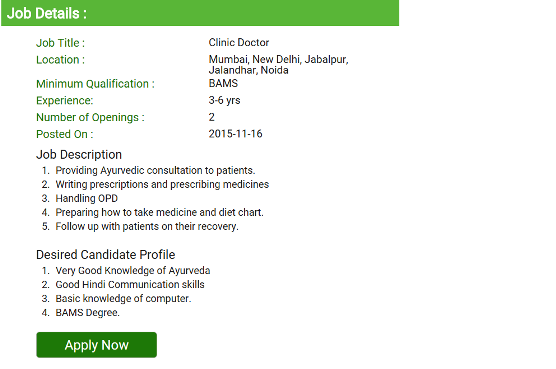 Vacancy for the post of Clinic Doctor,Jiva Ayurveda.