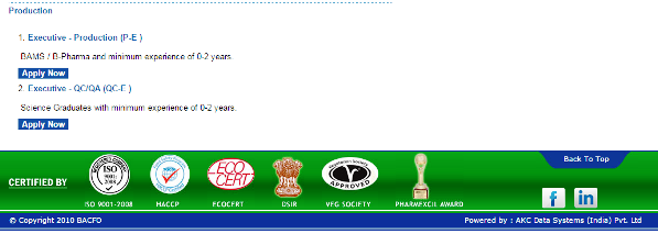 Vacancy for the post of Executive - Production (P-E) BACFO Pharmaceuticals India Ltd.