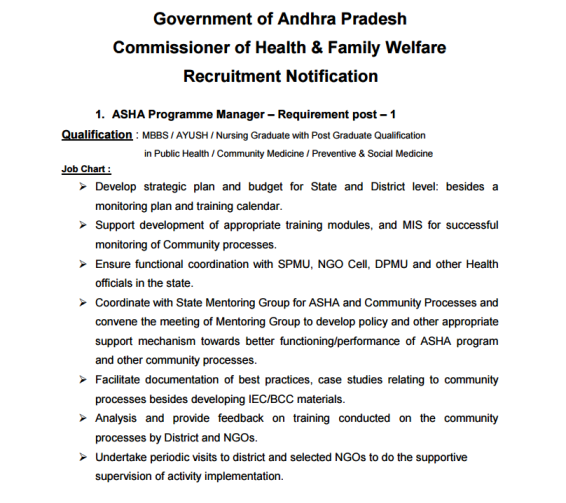 Vacancy for various posts at Government of Andhra Pradesh Commissioner of Health & Family Welfare.