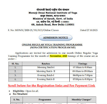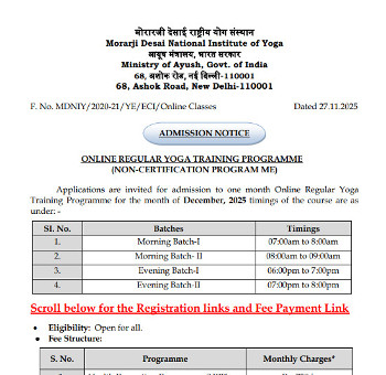 Admission Notice for Online Regular Yoga Training Programme (Non-Certification),