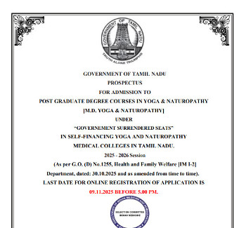 Admission Notice for M.D. Yoga & Naturopathy Courses 2025-2026,