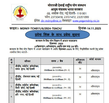 Admission Notice for Basic Course in Shatkarma Practices (BCSP-Offline Mode),