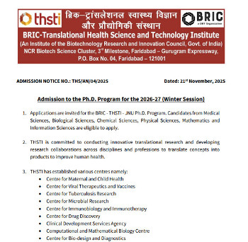 Admission Notice for Doctoral Degree Programme (Ph.D),