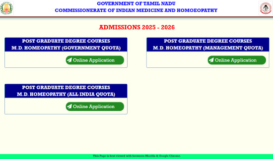 Admission Notice for Post Graduate Degree Courses in M.D. Homeopathy,