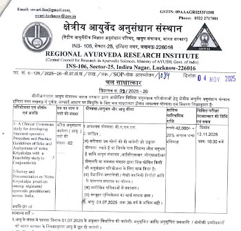 Walk-in Interview for the post of Senior Research Fellow (Ay.), Regional Ayurveda Research Institute, Lucknow.