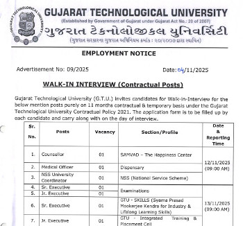 Vacancy for the post of Medical Officer, Gujarat Technological University.