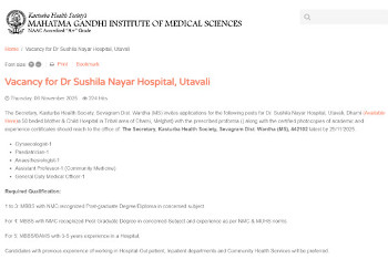 Vacancy for the post of General Duty Medical Officer, Mahatma Gandhi Institute of Medical Sciences.