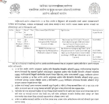 Vacancy for the post of Medical Officer, Malegaon Municipal Corporation.