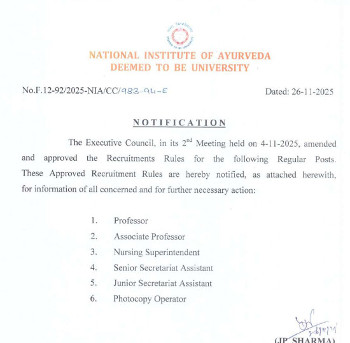 Vacancy for the posts of Professor and Associate Professor, National Institute of Ayurveda.