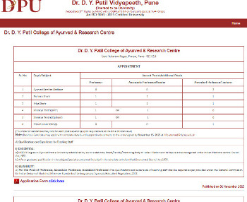 Vacancy for the post of Teaching Staff, Dr. D. Y. Patil College of Ayurved & Research Centre, Pune.