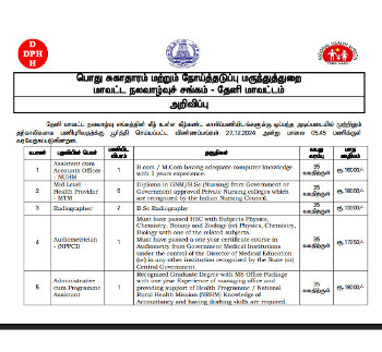 Job Code : 2 Vacancy for the post of District Quality Consultant (AYUSH), District Welfare Association, Theni.