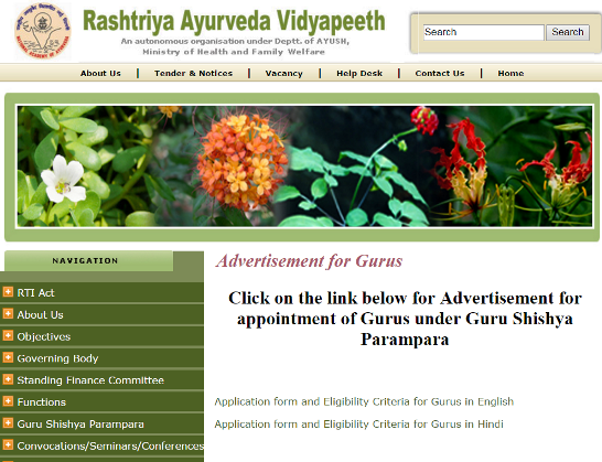 Vacancy for the post of Gurus under Guru Shishya Parampara,