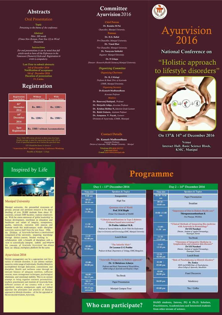 Ayurvision 2016: National Conference on Holistic Approach to Lifestyle Disorders, organized at Interact hall, KMC Manipal.