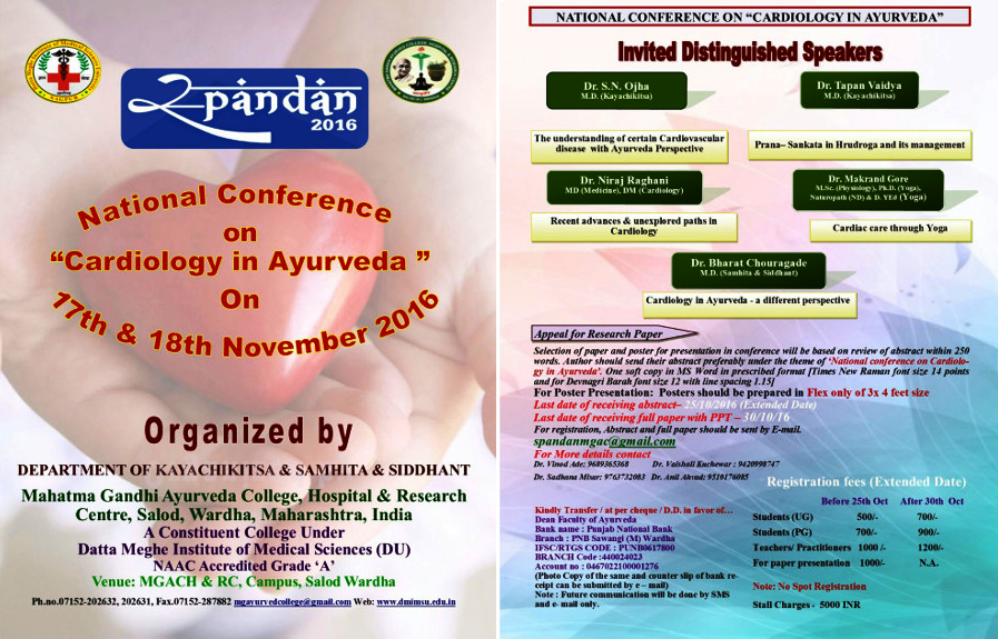 National Conference on Cardiology in Ayurveda, organized by Mahatma Gandhi Ayurved College, Hospital & Research Centre, Wardha.