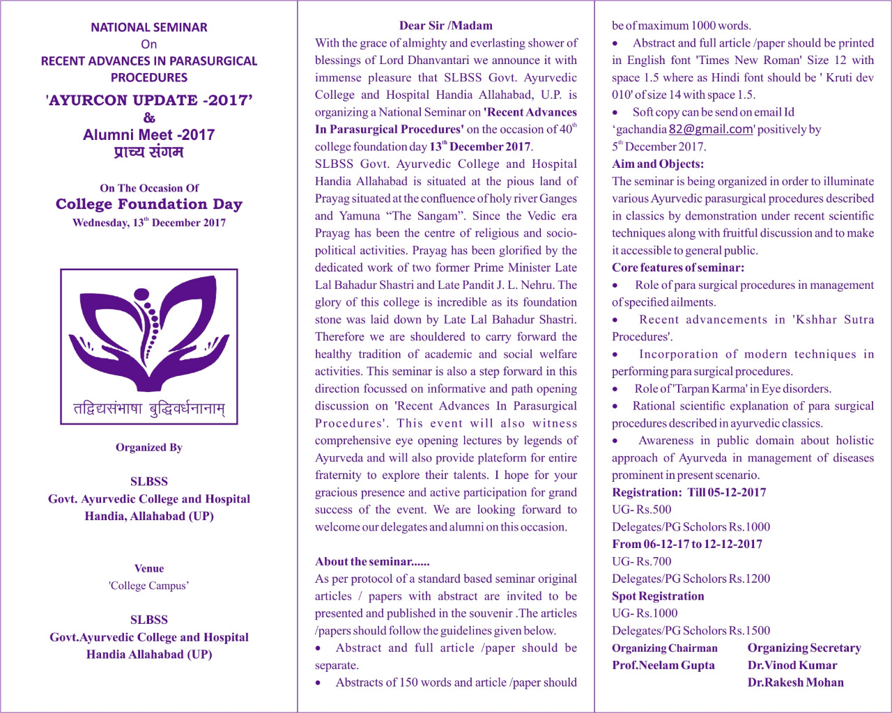 National Seminar on Recent Advances in Parasurgical Procedures 'AYURCON UPDATE - 2017', organized by Government Ayurvedic College and Hospital, Allahabad.