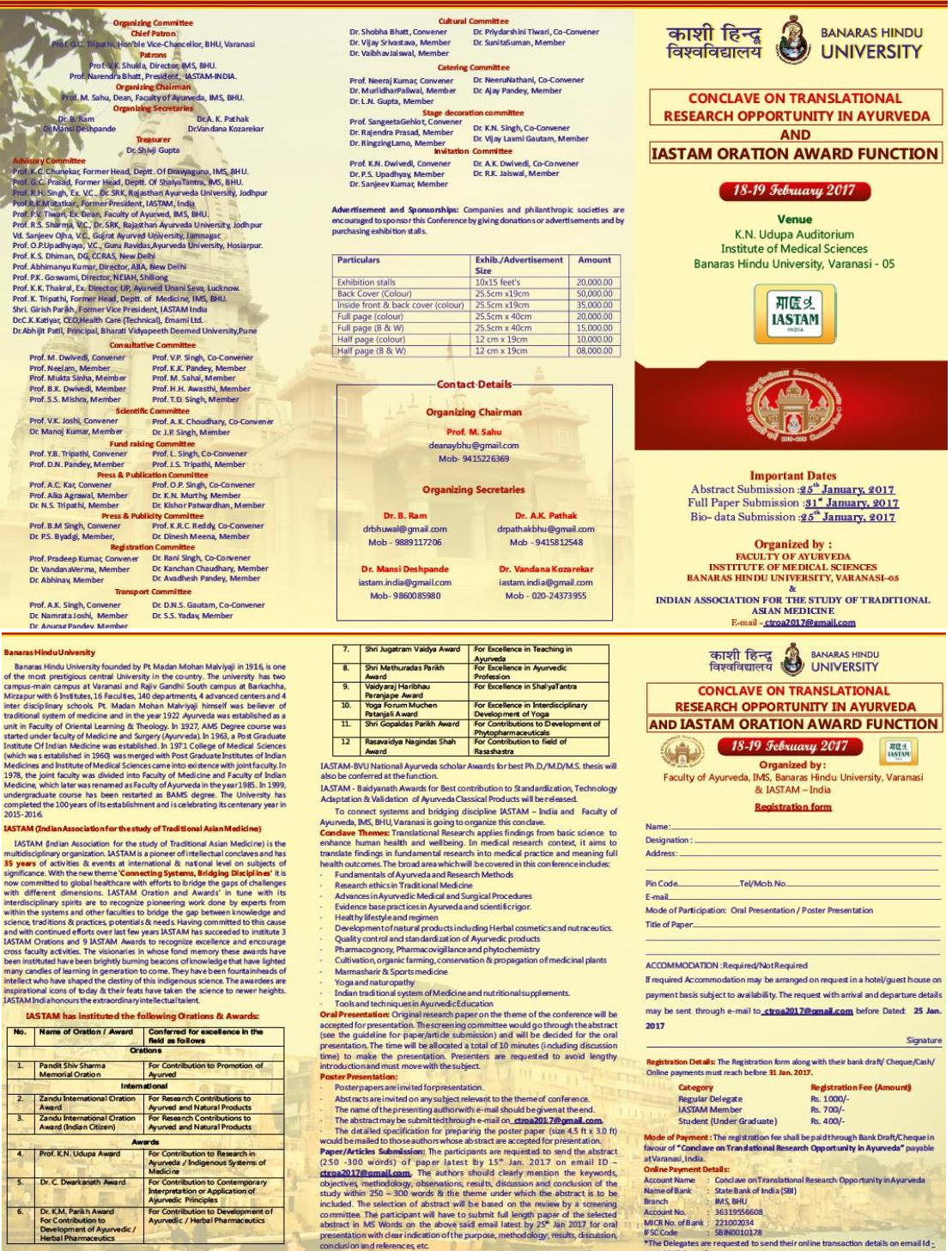 Conclave on Translational Research Opportunity in Ayurveda And Iastam Oration Award Function, organized by Banaras Hindu University, Varanasi.