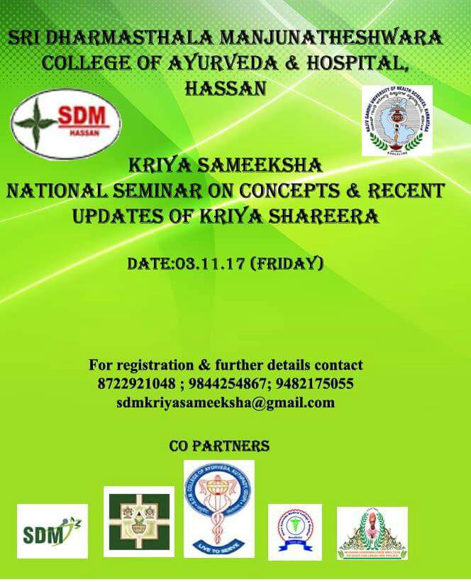 International Seminar On Concepts & Recent Updates of Kriya Sameeksha, organized by Sri Dharmasthala Manjunatheshwara College of Ayurveda & Hospital, Hassan.