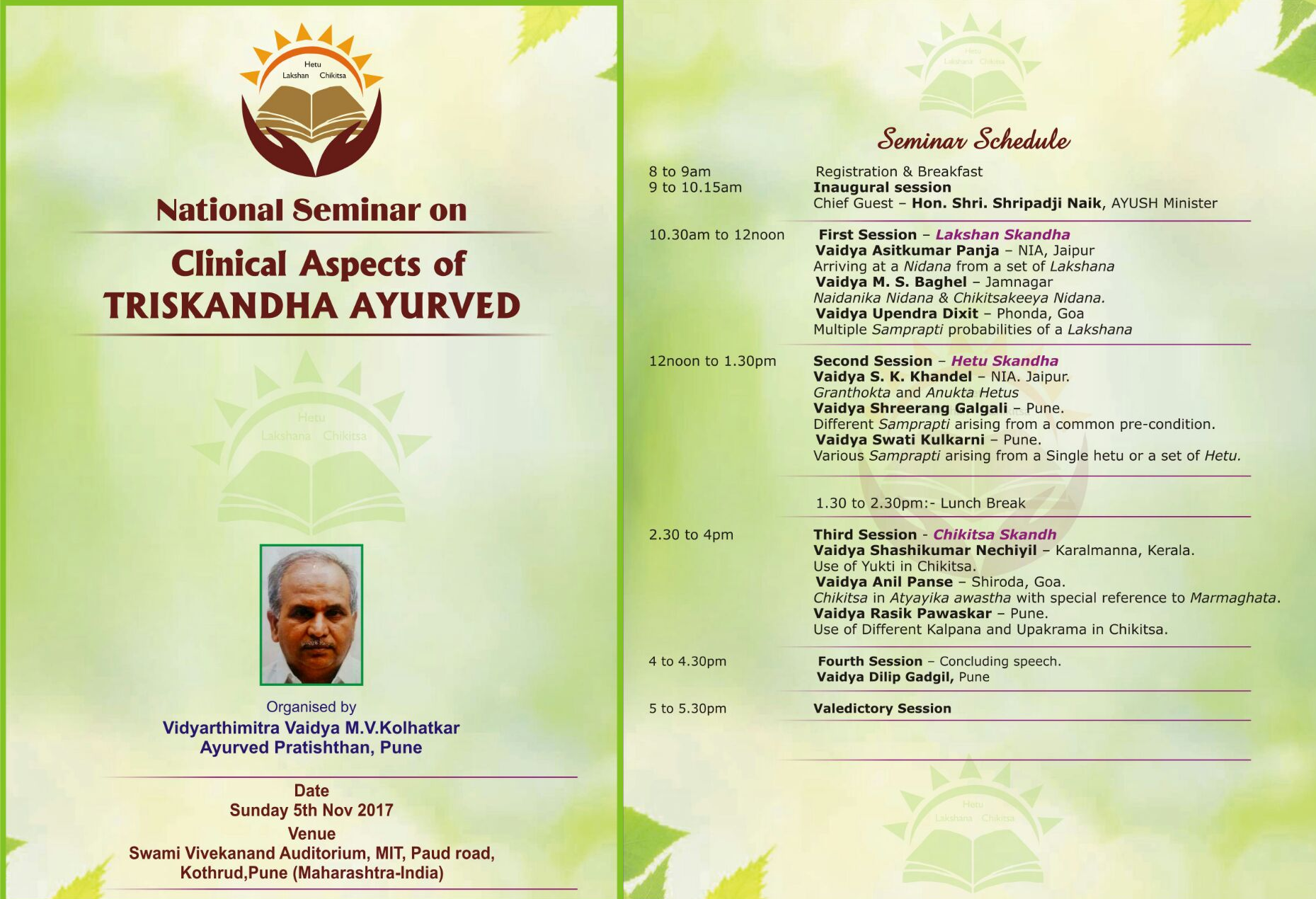 National Seminar on "Clinical Aspects of Triskanda Ayurved", organized by Vidyarthimitra Vaidya MV Kolhatkar Ayurved Pratishthan, Pune.