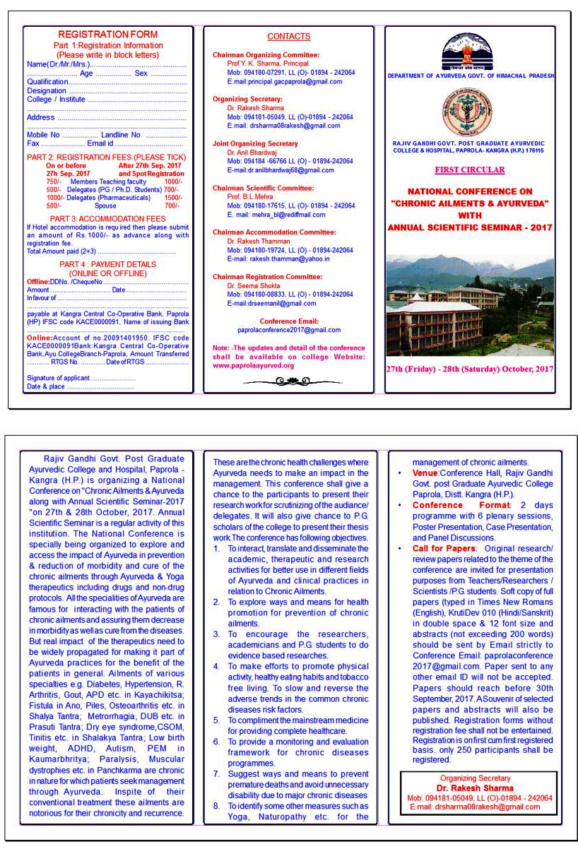National Conference on "Chronic Alignments & Ayurveda", organized by Rajiv Gandhi Government Post-Graduate Ayurvedic College & Hospital, Paprola.