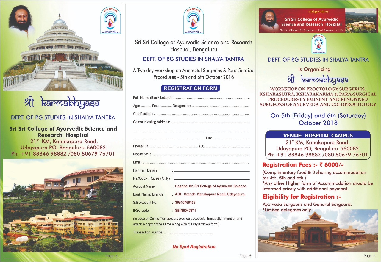 Sri Karmabhyasa: Workshop on Proctology Surgeries, Ksharasutra, Ksharakaram, Para-surgical Procedures by Eminent and Renowned Surgeons of Ayurveda and Coloproctology, organized by Sri Sri College of Ayurvedic Science And Research Hospital, Bangalore.