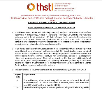 Walk-in Interview for Various Posts, Translational Health Science and Technology Institute, Haryana.
