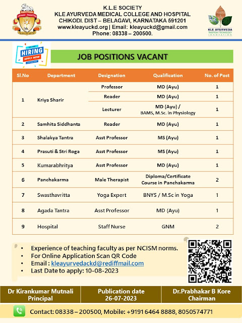 Vacancy For Teaching Faculty At KLE Ayurveda Medical College and Hospital