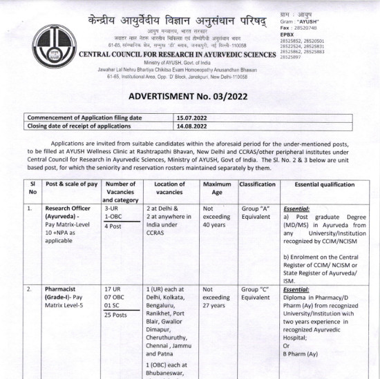 Central Council for Research in Ayurvedic Sciences, New Delhi.