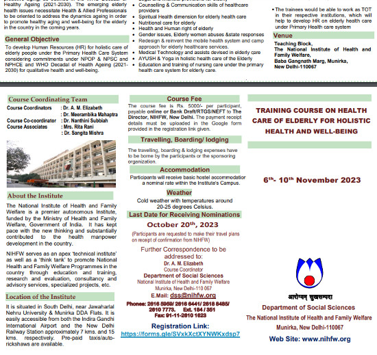Training Course on Health Care of Elderly for Holistic Health and Well-being, Organized by National Institute of Health and Family Welfare, New Delhi.