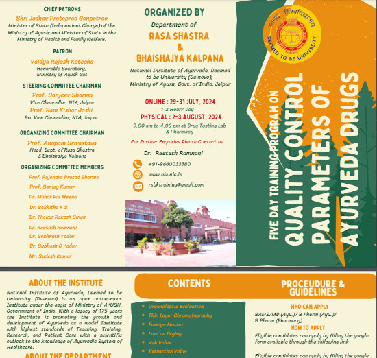 Five Day Training Program on Quality Control Parameters of Ayurveda Drugs (Physical), Organized by National Institute of Ayurveda, Jaipur.