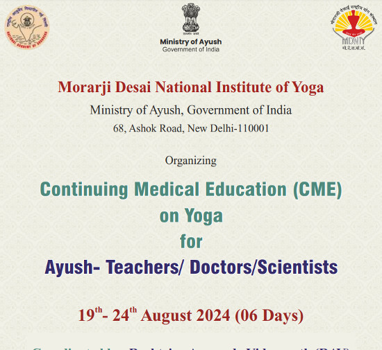 Continuing Medical Education on Yoga for Ayush-Teachers/ Doctors/Scientists, Organized by Morarji Desai National Institute of Yoga, New Delhi.