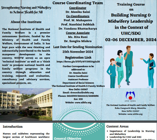 Training Course on Building Nursing & Midwifery Leadership in the Context of UHC/SDG, Organized by National Institute of Health & Family Welfare, New Delhi.
