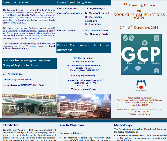 3rd Training Course on Good Clinical Practices, Organized by National Institute of Health and Family Welfare, New Delhi.