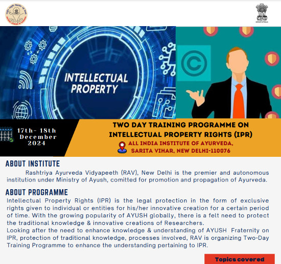 Two Day Training Programme on Intellectual Property Rights (IPR), Organized by Rashtriya Ayurveda Vidyapeeth, New Delhi.