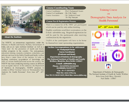 Training Course on Demographic Data Analysis for Health Personnel, Organized by National Institute of Health & Family Welfare, New Delhi.