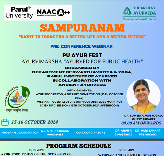 "SAMPURANAM": Pre-conference Webinar AYURVIMARSHA-"Ayurved For Public Health", Organized by Parul Institute of Ayurved.