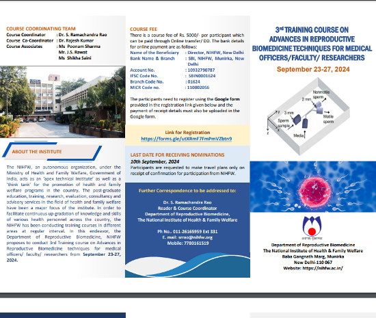 3rd Training Course on Advances in Reproductive Biomedicine Techniques for Medical Officers/Faculty/ Researchers, Organized by National Institute of Health & Family Welfare, New Delhi.