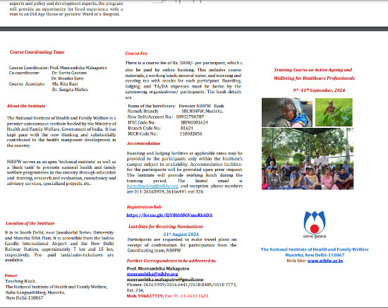 Training Course on Active Ageing and Wellbeing for Healthcare Professionals, Organized by National Institute of Health and Family Welfare, New Delhi.