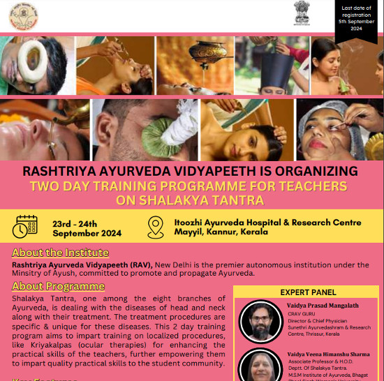 Two Day Training Programme for Teachers on Shalakya Tantra,