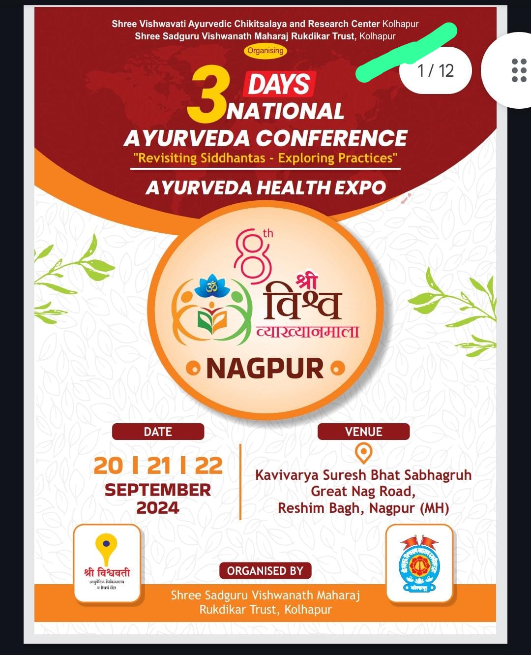 3 Days National Ayurveda Conference: "Sri Vishwavyakhanmala", Organized by Shree Sadguru Vishwanath Maharaj Rukdikar Trust , Kolhapur.