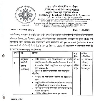 Walk-in Interview for the post of Research Associate, Institute of Teaching & Research in Ayurveda, Jamnagar.