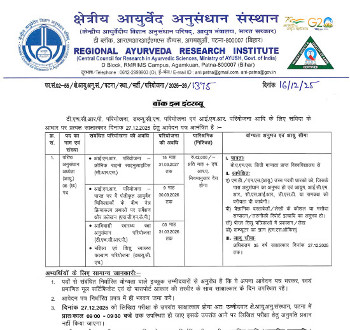 Walk-in Interview for the post of Senior Research Fellow (Ay.), Regional Ayurveda Research Institute, Patna.