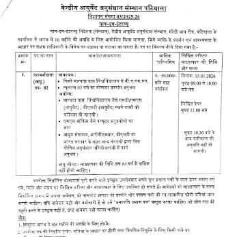 Walk-in Interview for the post of Consultant (Ay.), Central Ayurveda Research Institute, Patiala.