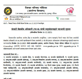 Vacancy for the post of Medical Officer, Zilla Parishad Gondia.