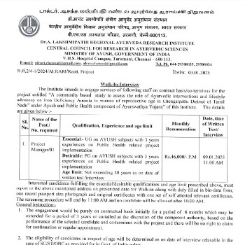 Walk-in-Interview for the post of Project Manager AYUSH,