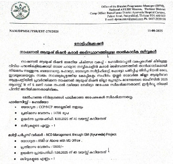 Vacancy for the post of Pharmacist (Homoeopathy), National AYUSH Mission, Thrissur.