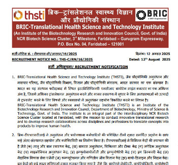 Vacancy for the post of Team Lead Clinical Science Homeo, BRIC-Translational Health Science and Technology Institute, Faridabad.