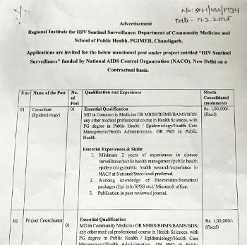 Vacancy for Various Homeo posts, Postgraduate Institute of Medical Education & Research, Chandigarh.