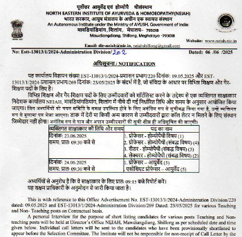 Walk-in-Interview for Various Homeopathy posts, North Eastern Institute of Ayurveda & Homoeopathy, Meghalaya.
