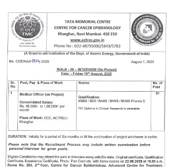 Walk-in Interview for the post of Medical Officer (Unani),
