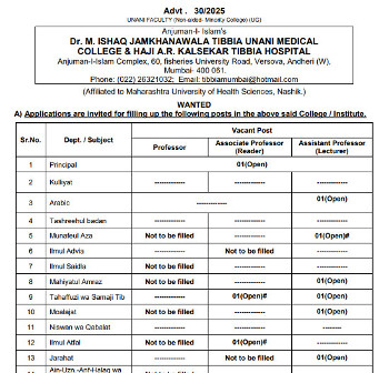 Vacancy for the posts of Unani Faculty,